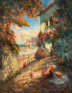 This original, oil on canvas of a women and her children on a quay in Venice is a beautiful picture of motherhood and femininity that was painted about 50 years ago by the French Artist Eugene Begarat...