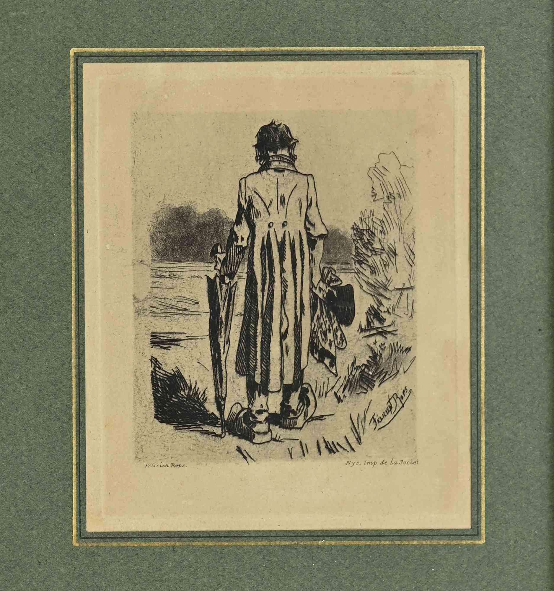 Médecine Expérimentale - Etching by Félicien Rops - 1854