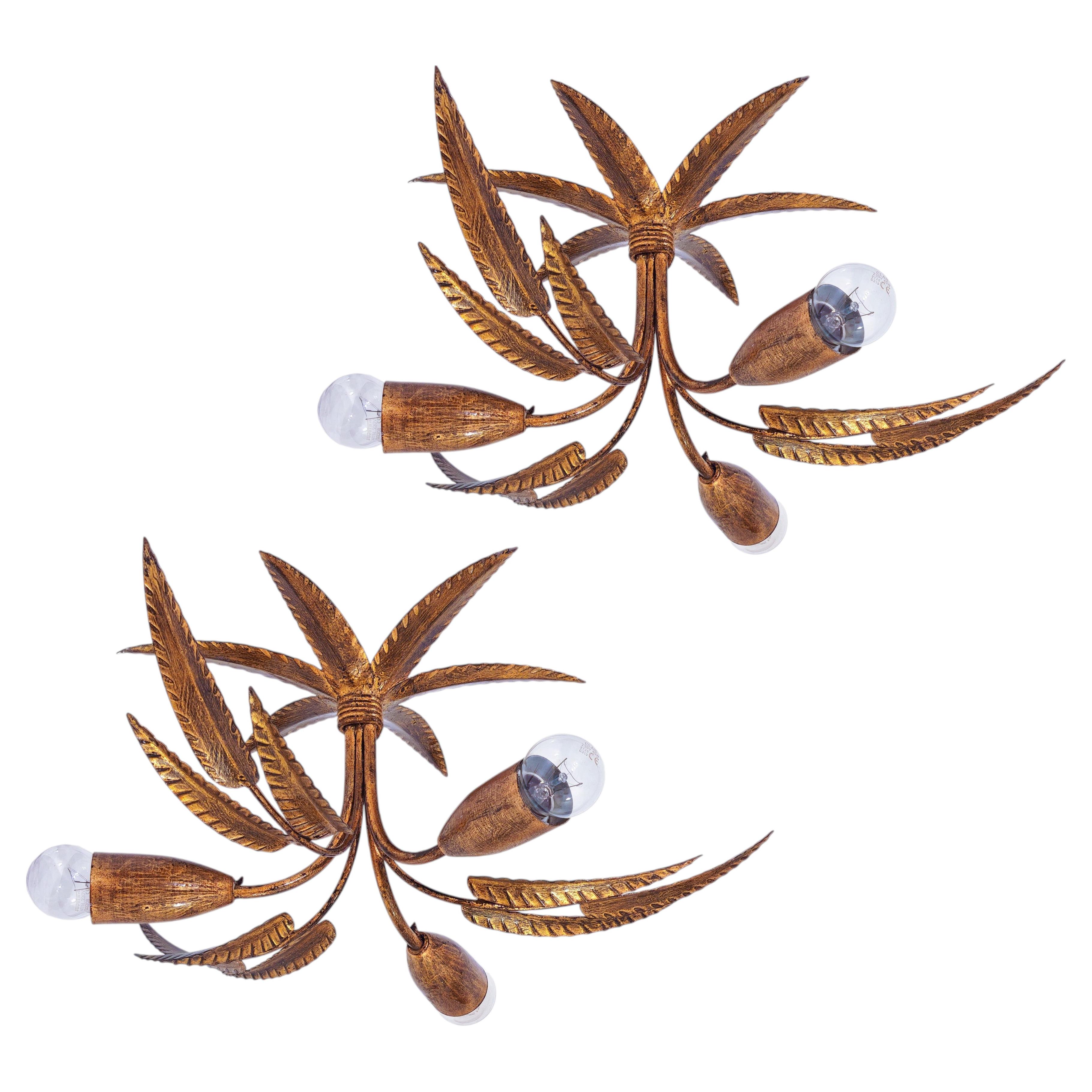 Mid-Century gilt wrought iron flush mount by Ferro Art, Spain, 1950s