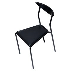 Leather And Black Lacquered Metal Chair By Italian Manufacturer Fly Line. The Very Graphic Line Of This Model Is Characteristic Of The Aesthetics Of The 80S. Slight Traces Of Wear On...