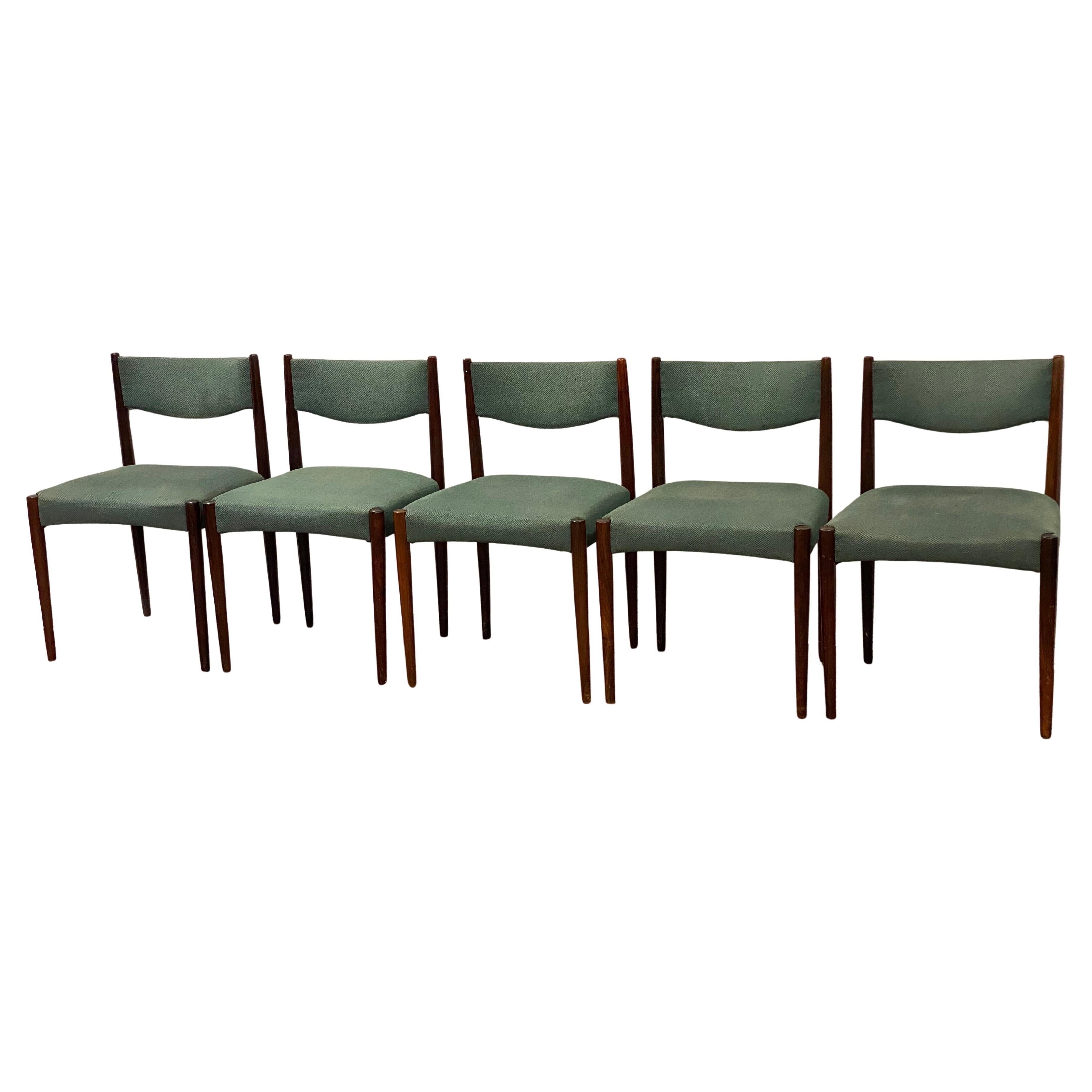 1960s Danish Modern Teak & Vinyl Dining Chairs by Frem Rojle - Set of 5