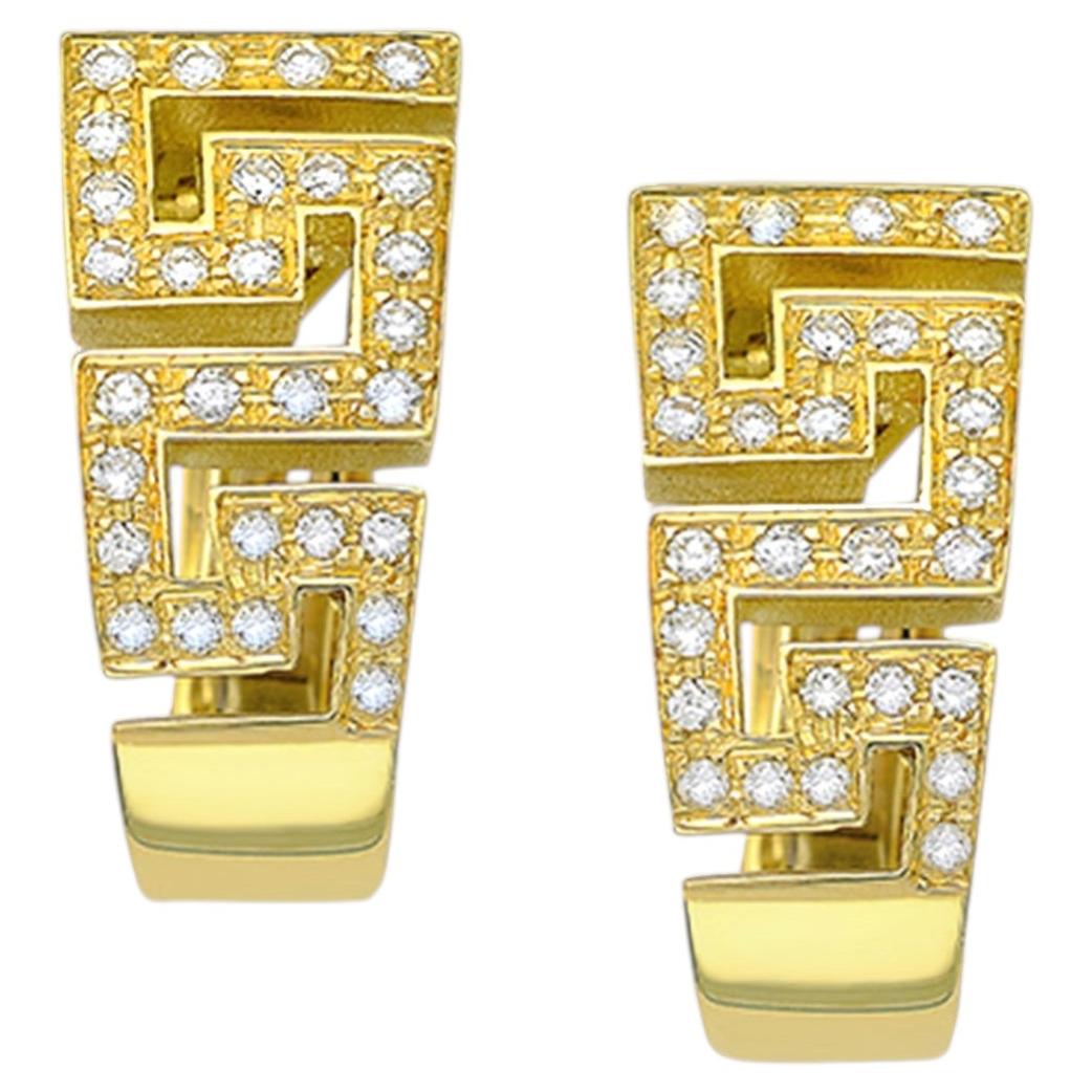 Georgios Collections 18 Karat Yellow Gold Greek Key Design Diamond Earrings