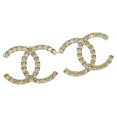 CHANEL Classic Gold and Crystal CC Logo Stud Earrings