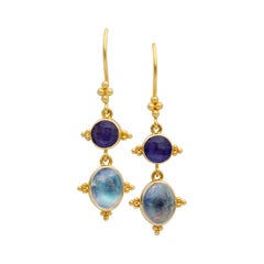 These earrings are so cool. They make their own statement. The main stones are Aquamarines from Africa and are just exquisite. They are very high-quality stones. They are oval cu...