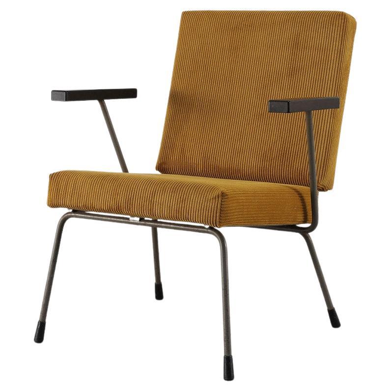 A red polyester lounge chair model No. 416 designed by Wim Rietveld (son of Gerrit Thomas Rietveld) and André Cordemeyer for Gispen, Culemborg, 1957. This first Dutch polyester armchair was made of on piece of moulded polyester, a new technique for the Dutch furniture making market. This experimental chair...