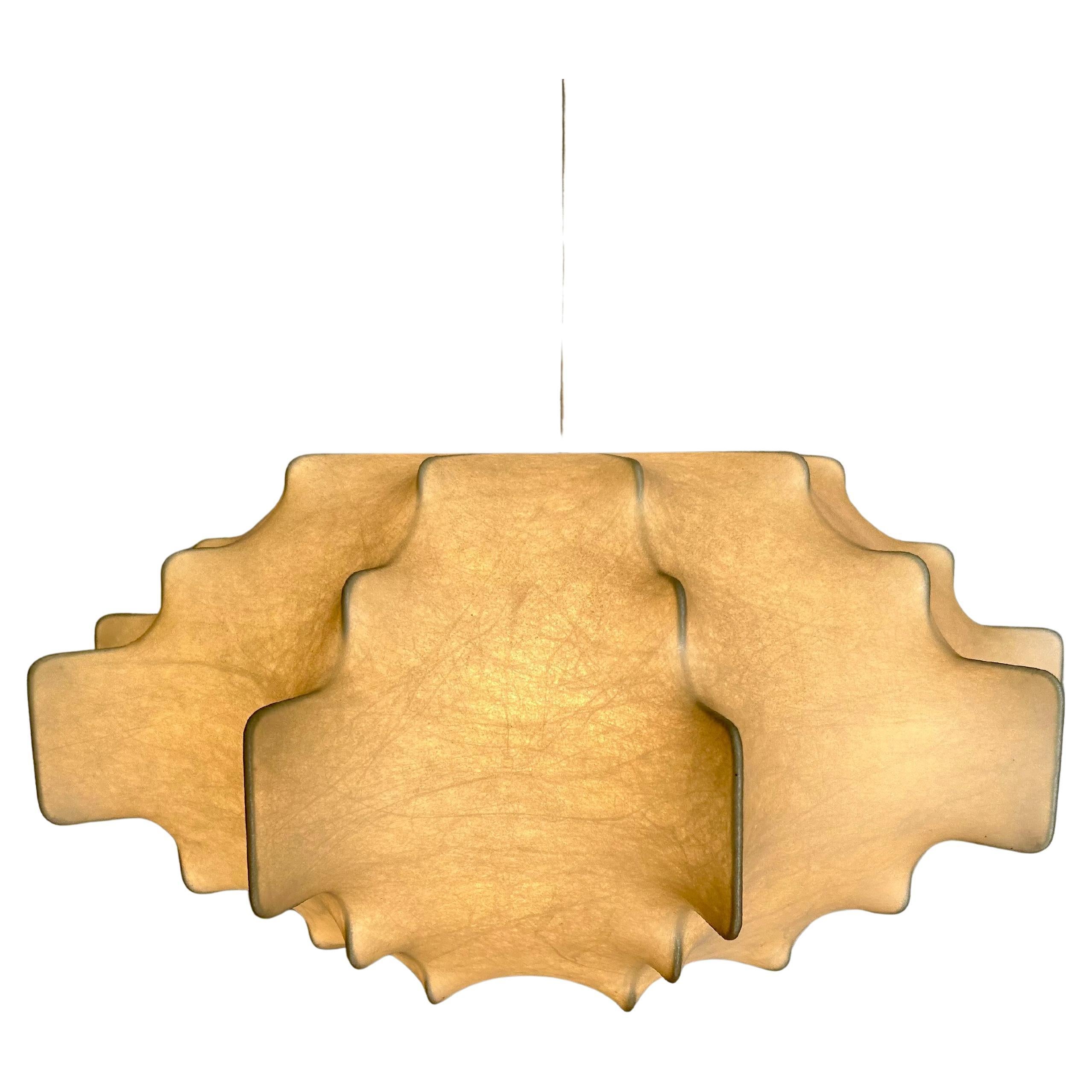 Mid-Century Modern UFO Discus Cocoon Pendant Lamp, based on a design by Friedel Wauer from the 1960s. A minimalist design. The lamp has a simple discus shape. The Cocoon material pr...