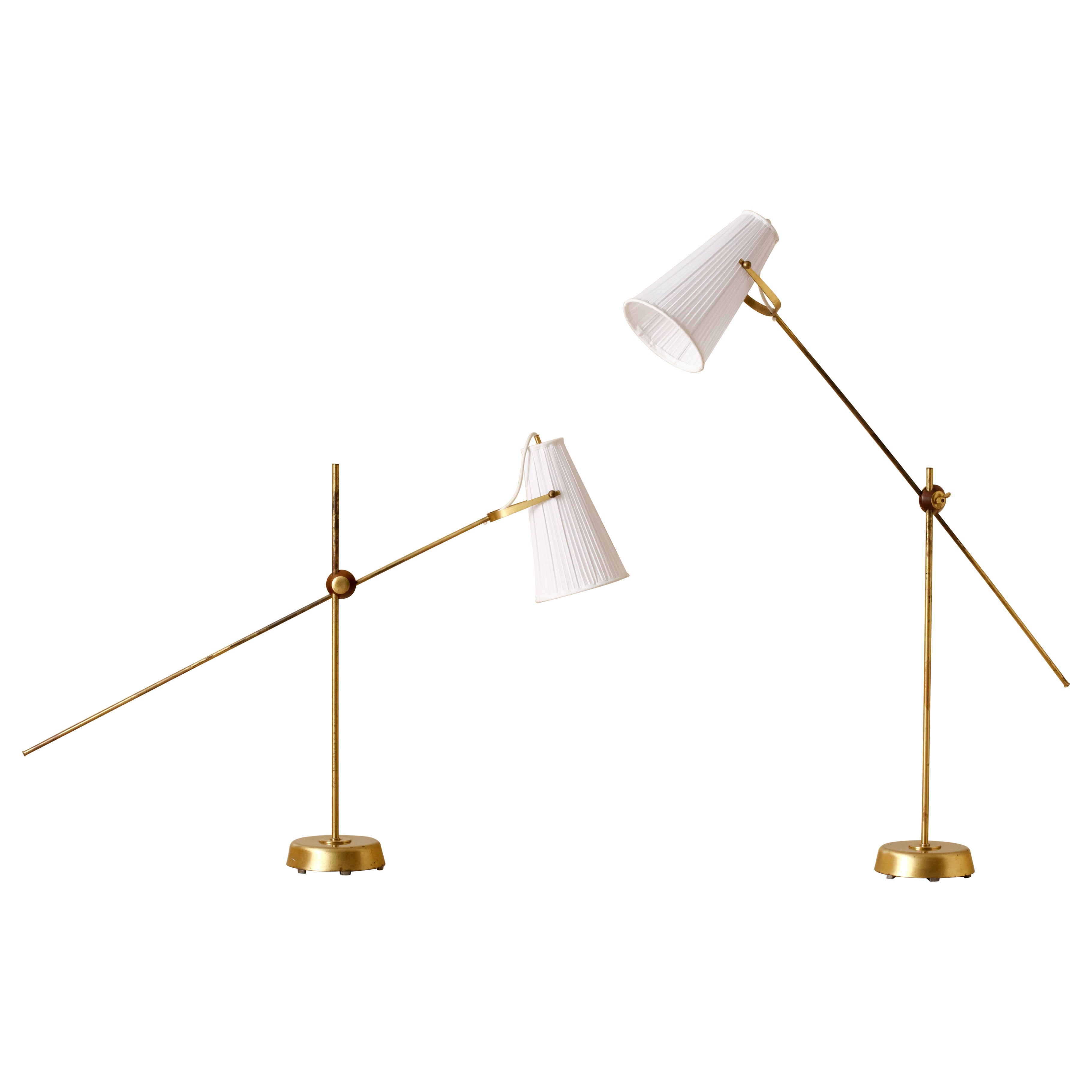 Hans Bergström, table lamp 726, brass & textile, Ateljé Lyktan, Sweden, 1940s