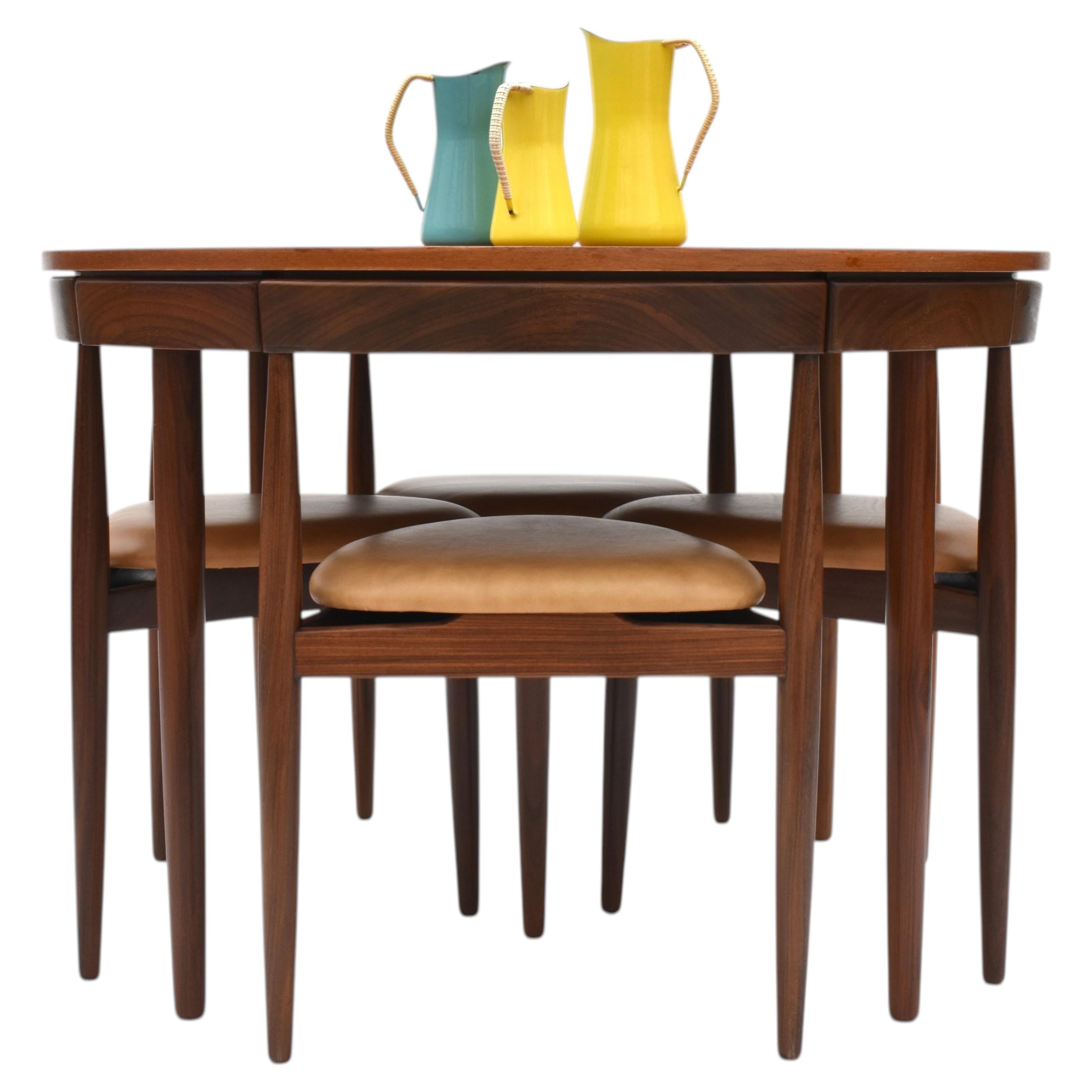A refined example of Scandinavian Mid-Century Modern design, this writing desk by Hans Olsen epitomizes minimalist elegance. Crafted from dark walnut and teak, the desk features a teak surface framed by a sleek walnut border, creating a harmonious contrast of wood tones. The piece is further elevated by solid teak cylindrical legs, each rounded for a soft, sculptural presence.