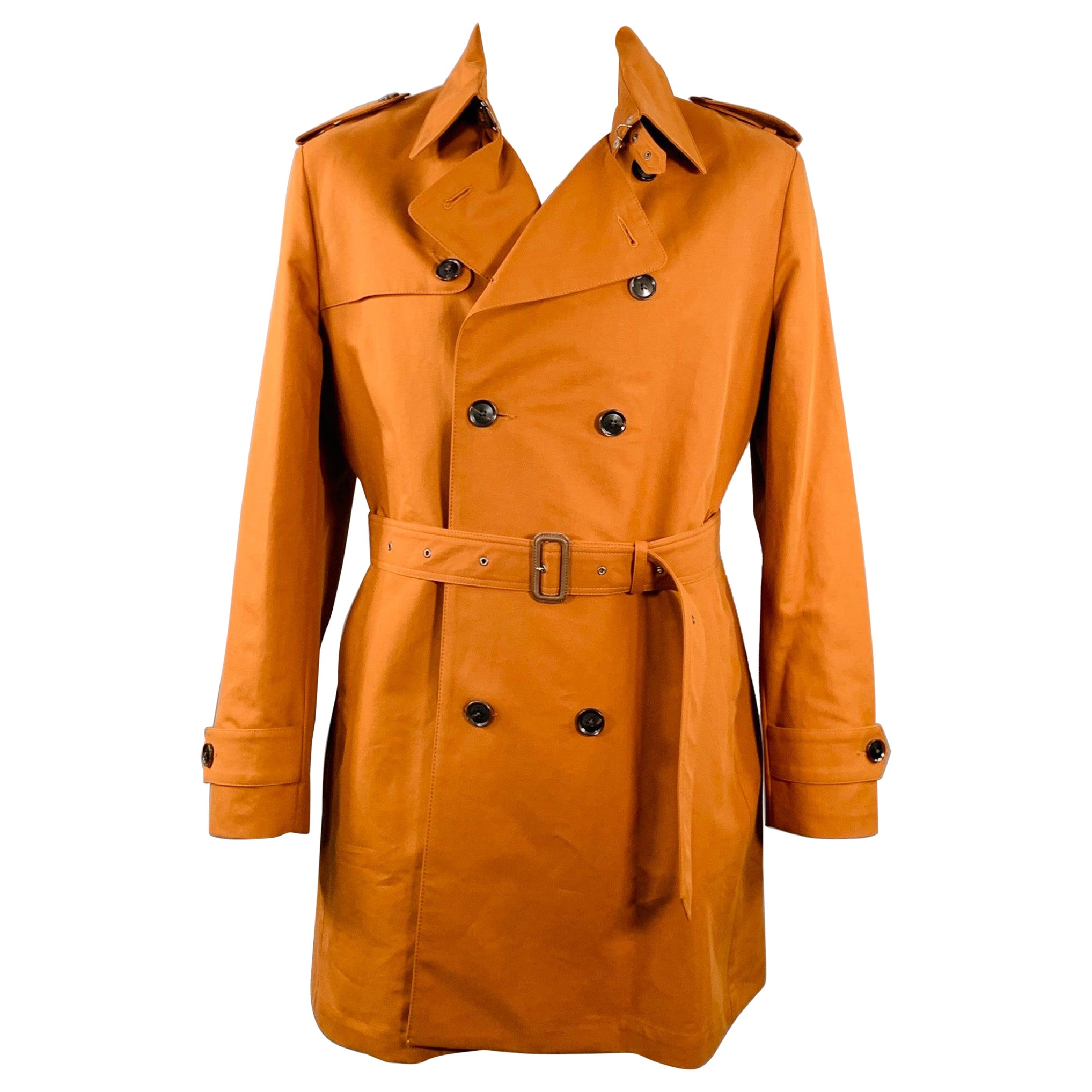 HARDY AMIES Size 44 Rust Orange Cotton Double Breasted Belted Trenchcoat