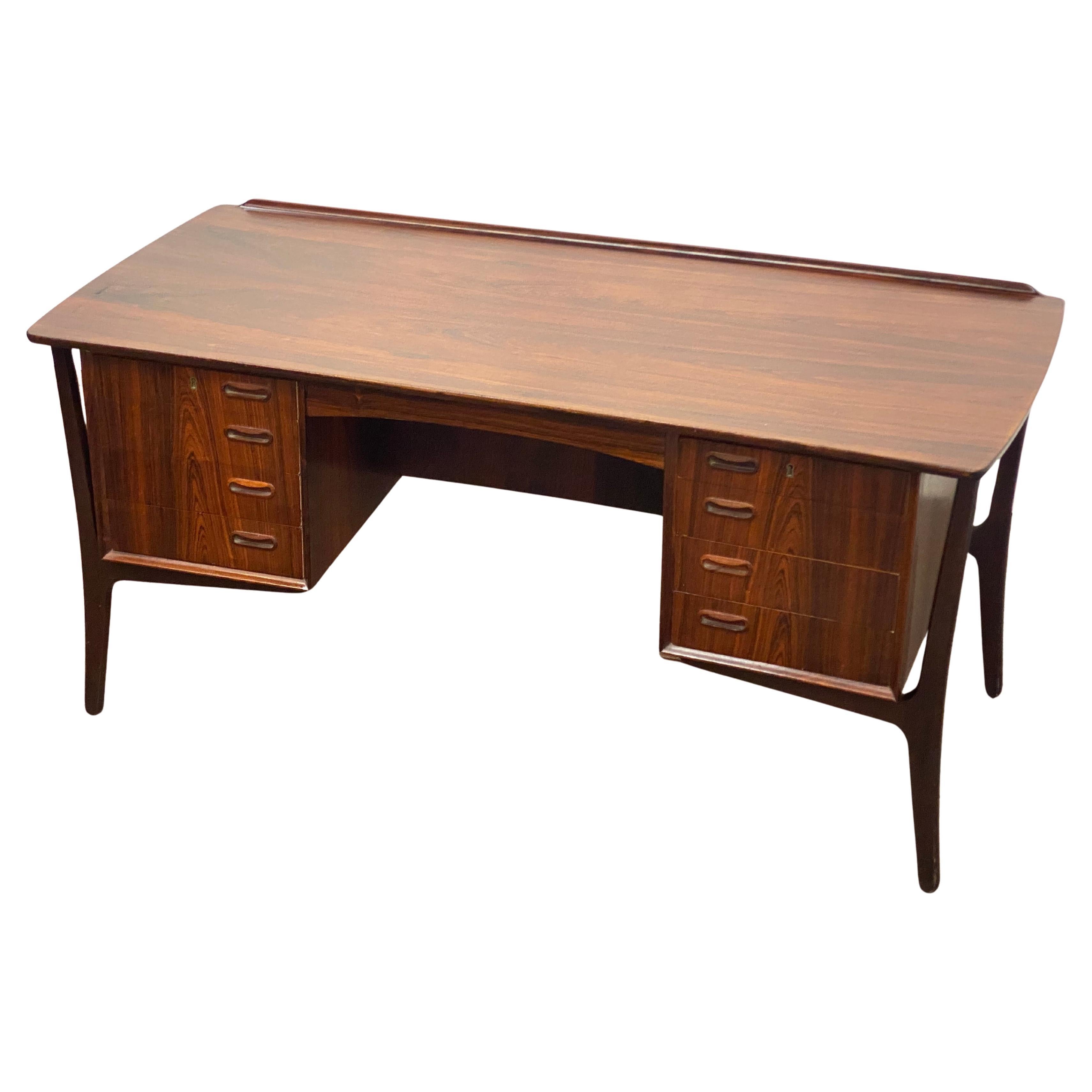 Vintage Danish Rosewood Floating Executive Desk by H.P. Hansen
