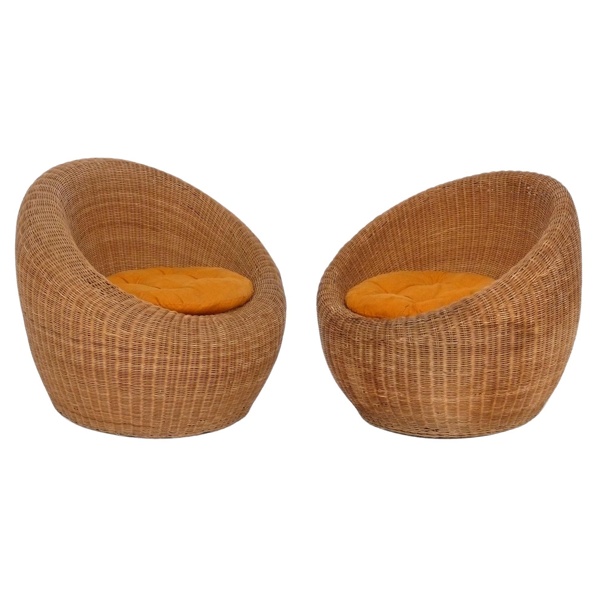 Isamu Kenmochi Sculptural Rattan Lounge Chairs Mid Century Modern Japan