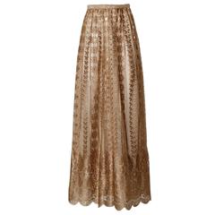 Jill Richards Vintage Scalloped Metallic Copper + Taupe Lace Maxi Skirt