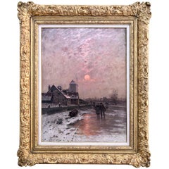 "Winter's Glow" 19th Century Dutch School Painting by Johann Jungblut