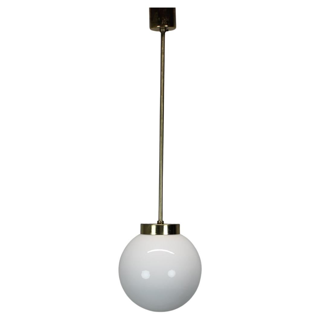 Rare Midcentury Brass and Milk Glass Pendant Kamenicky Senov, 1970s