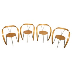 Pair of Postmodern 'Tokyo' dining chairs by Rodney Kinsman for Bieffeplast, 1980's. Black powder coated tubular metal frames with a contrasting natural wood seat and finished with a ...