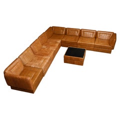 An impressive 1960s modular set of eight (8) sections of cognac brown patchwork leather sectional living room set by Brazilian Modern desig...