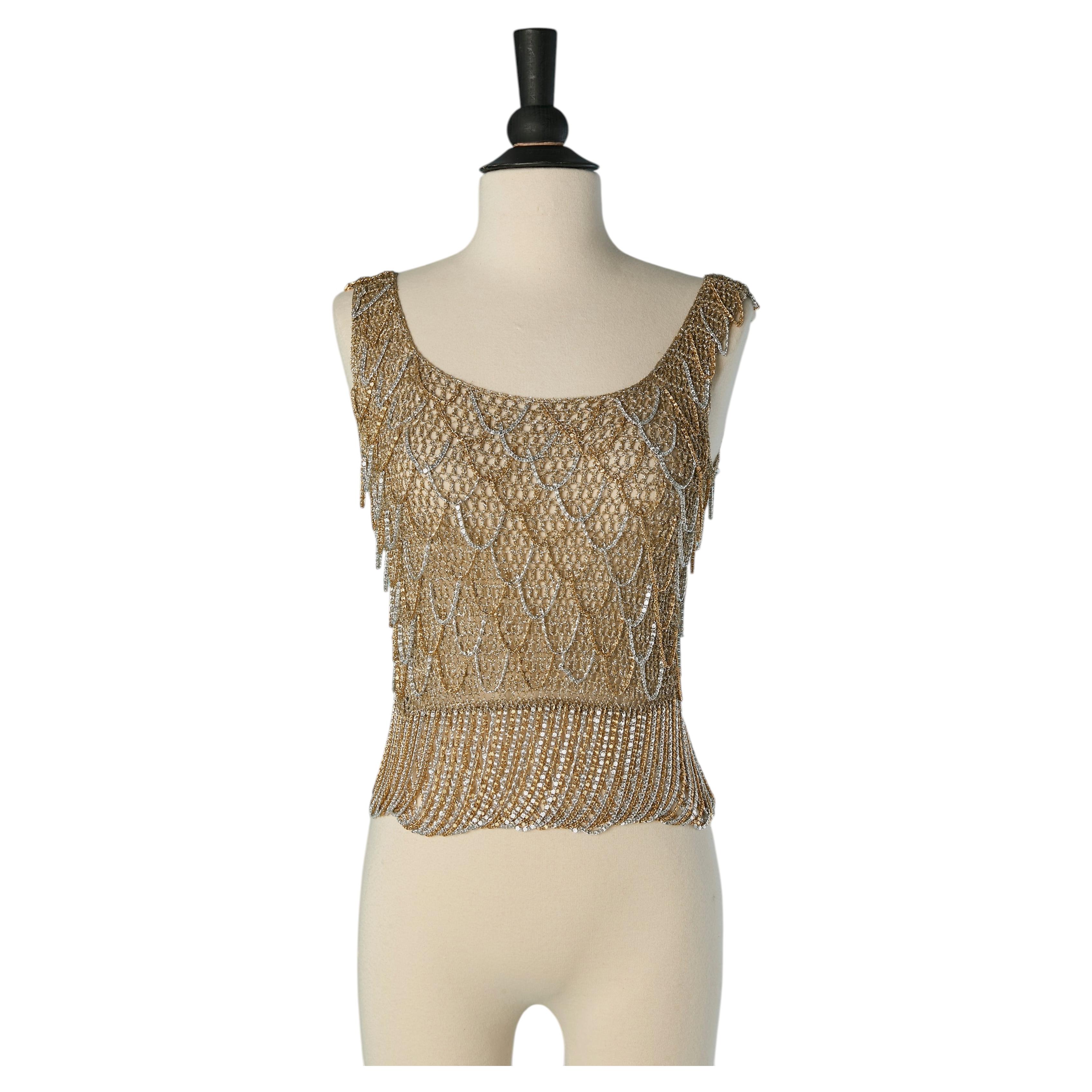 Gold lurex knit tank top with silver and gold metal chain . SIZE 34/XS