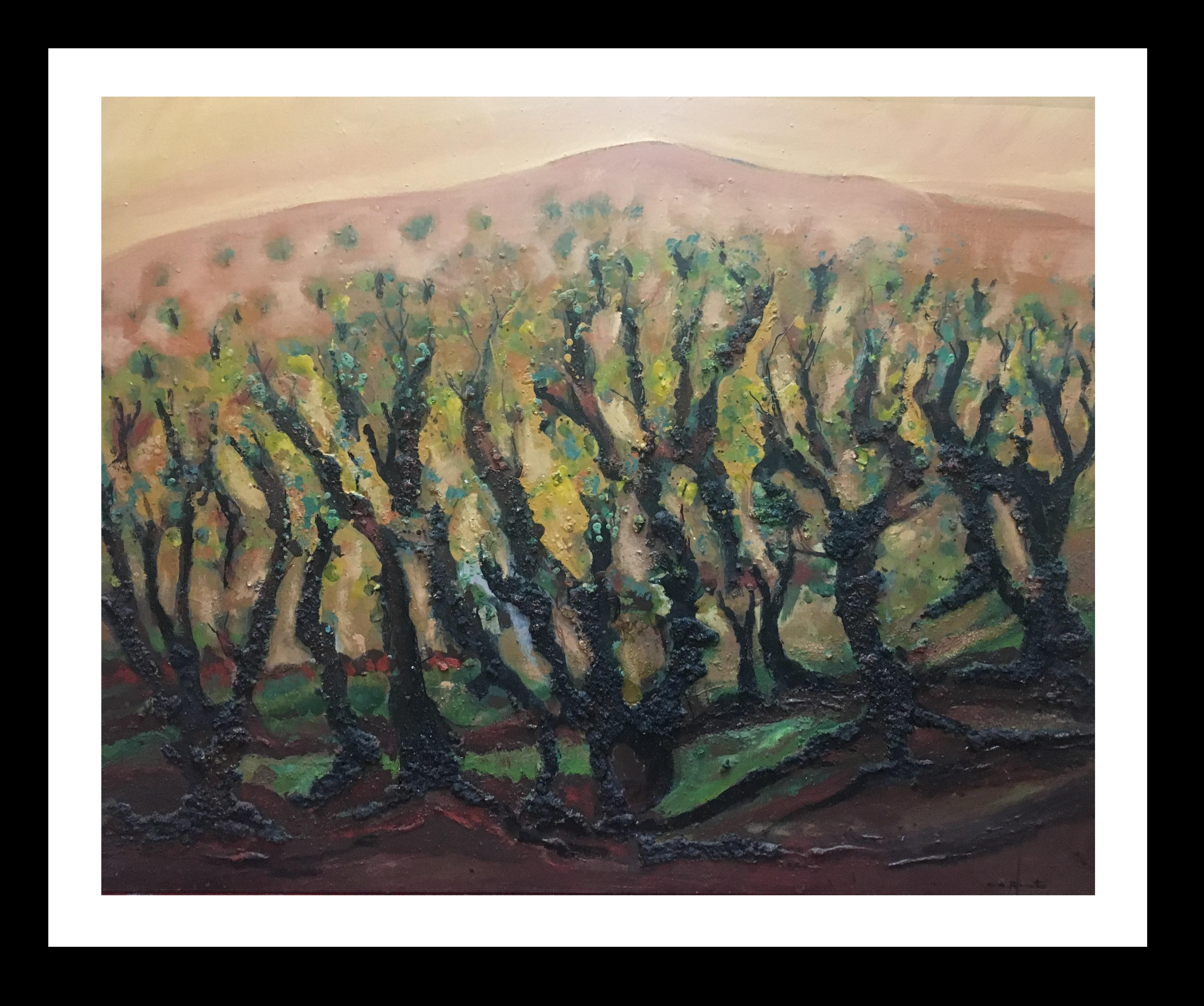 Raventos 17 Landscape of Vineyar Big expressionist mixed media painting