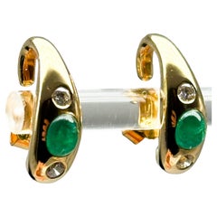 New 7 Carat Natural Emerald 14k Yellow Gold Plated Sterling Curved Earrings