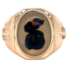 1984 Signet Men Ring 4ct natural Onyx solid 18K Gold Ø 9.75 US / 3.5 gr