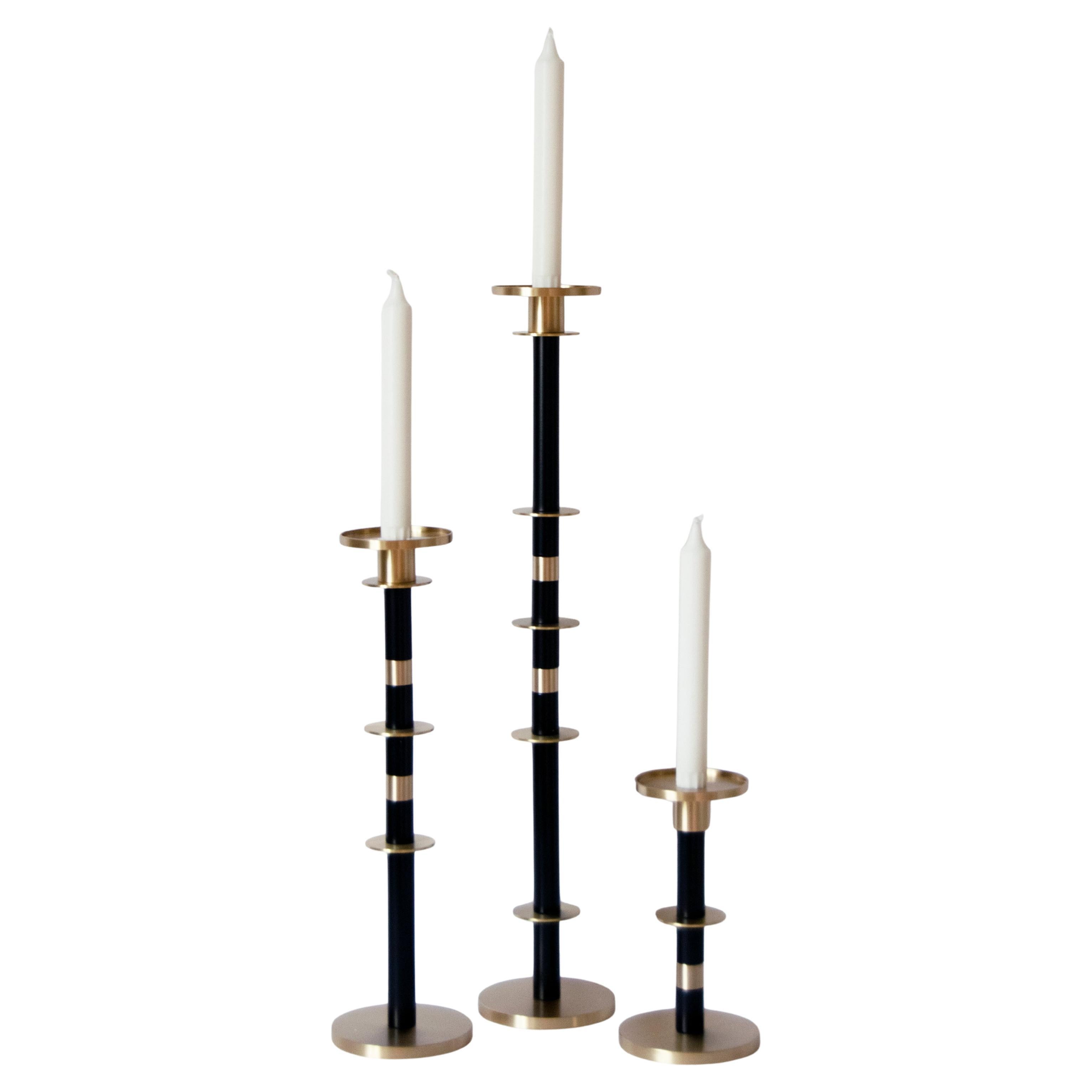 21st C Maïa Candleholders Brass Black by French Designer Marine Breynaert