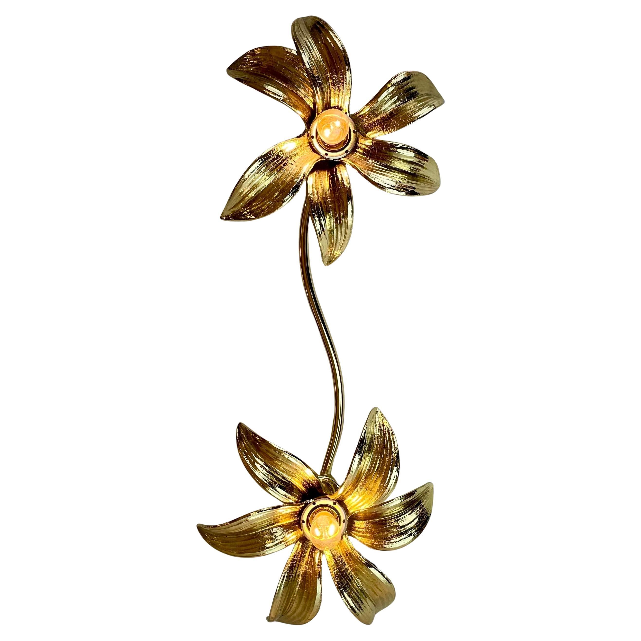 1 of the 10 Massive Brass Flower Wall Lights, Willy Daro Style, 1970s