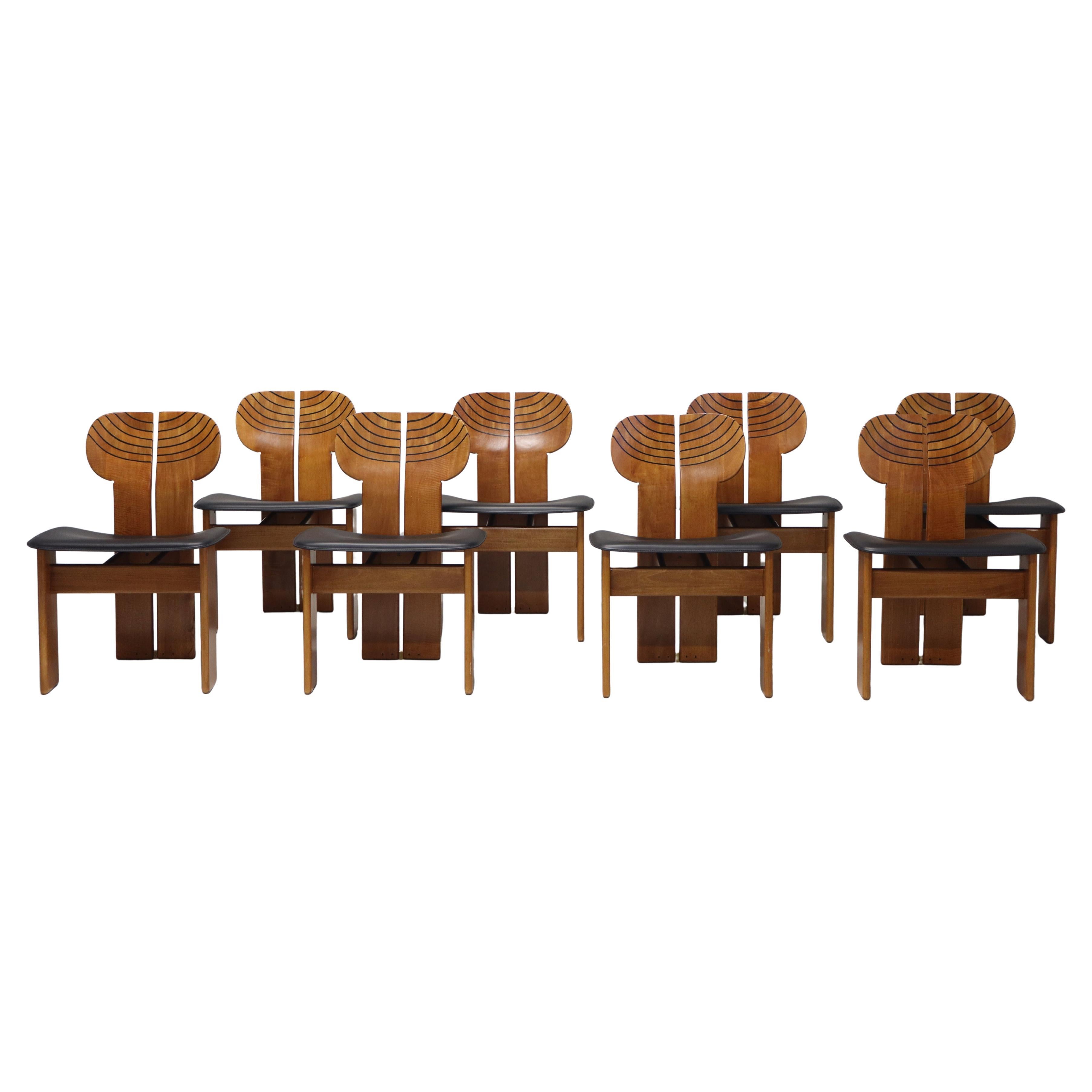 Italian midcentury modern design set of two sofa from the “Artona” series designed by Afra & Tobia Scarpa for Maxalto in the 1970s, with a wooden frame featuring decorative bands...