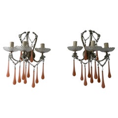 Pair of Murano Green Leaf Glass Wall Lights, in Stock