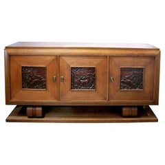 Newly Refinished - Mid-Century Modern Credenza w/ Relief Panels