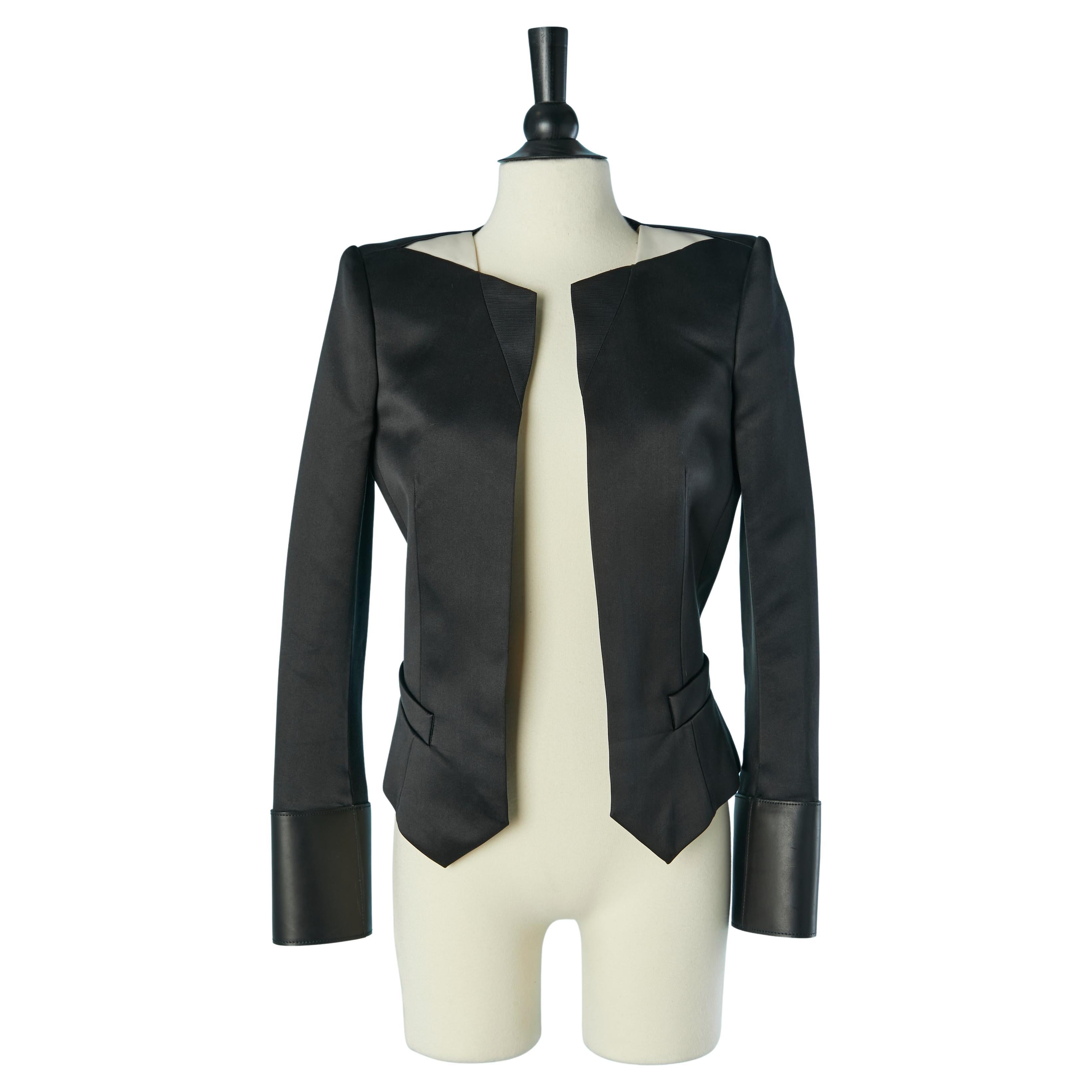 Black satin jacket with black leather sleeve edge BALENCIAGA