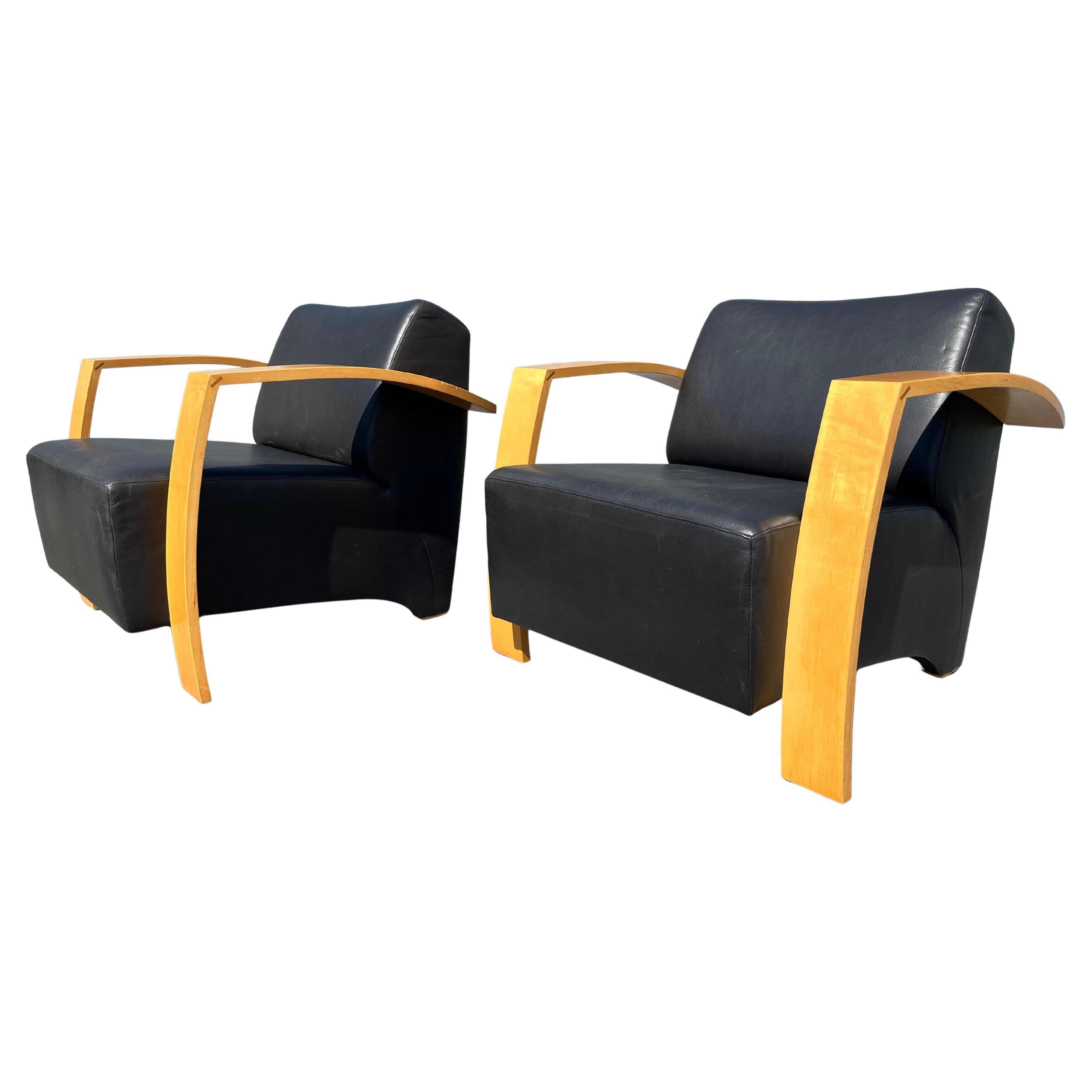Pair of Max Lounge Chairs Designed by Mark Müller for Nienkämper, Black Leather, Wood. Ready for a new home.