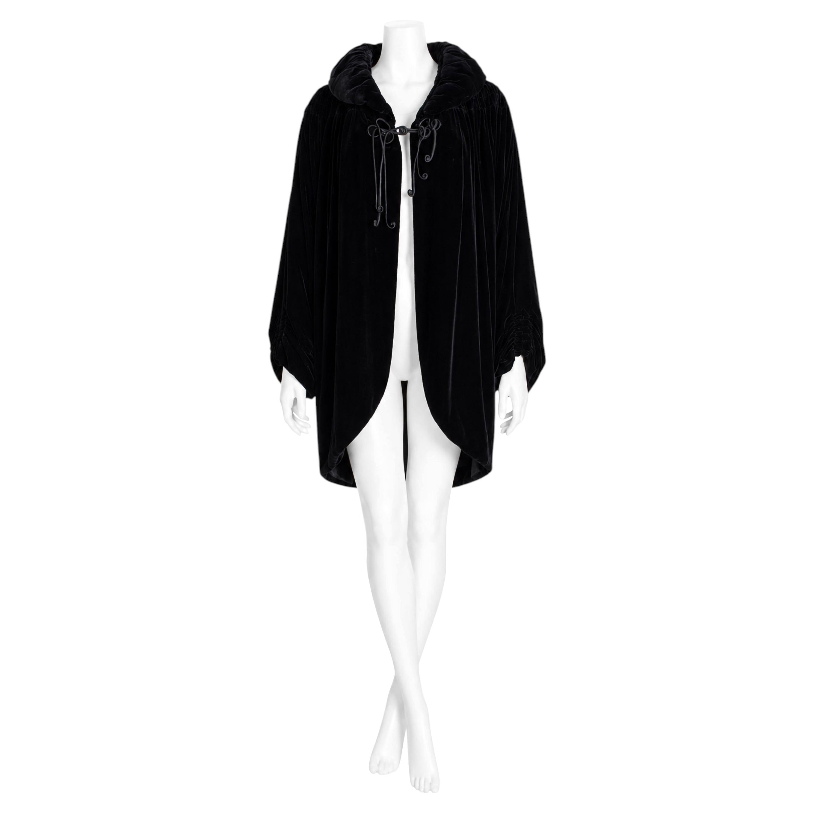 Norma Kamali Black "Avant-Garde" Extreme Hooded Collar, Bell-Sleeve Wrap Jacket
