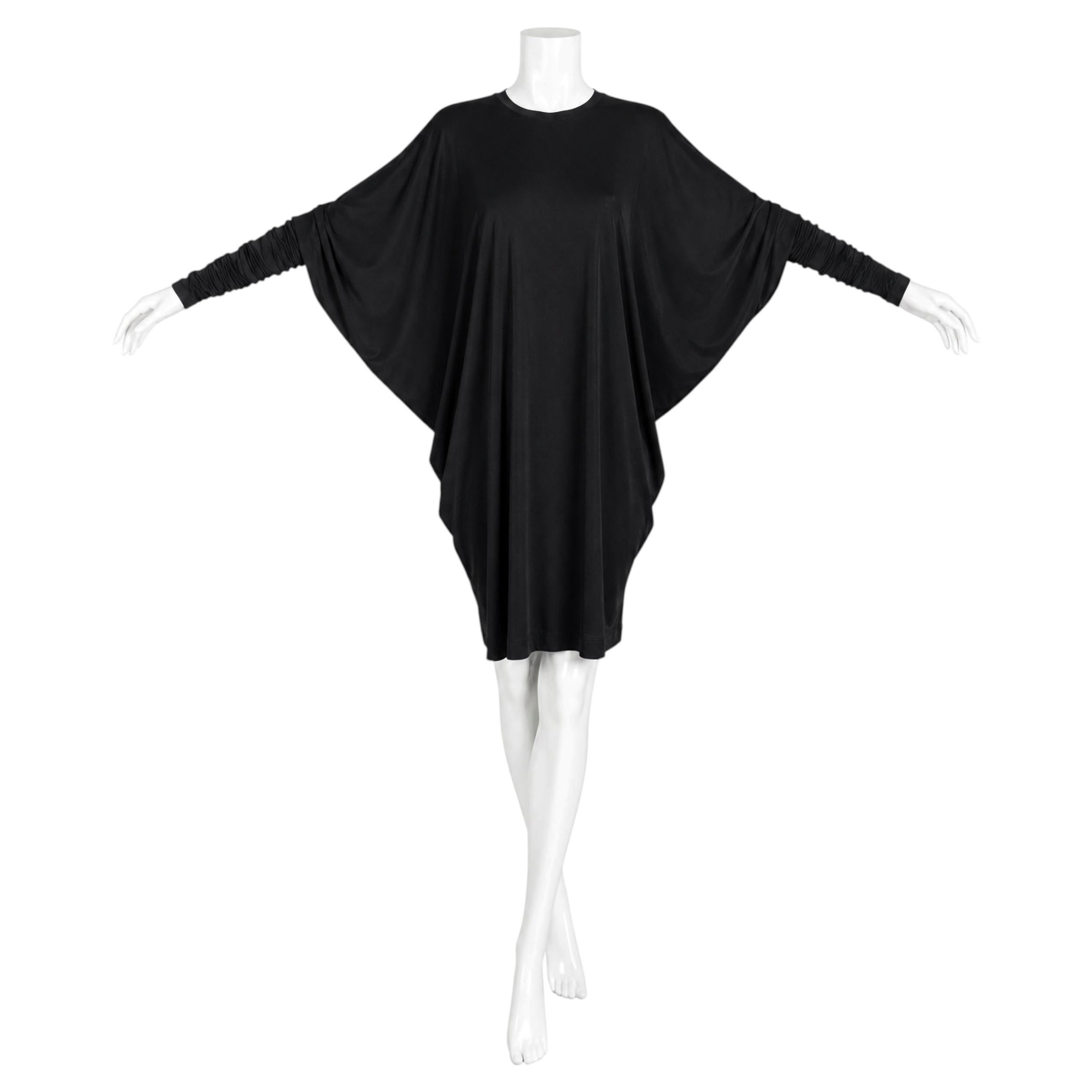 Norma Kamali Vintage 1980s Black Crepe Dolman Batwing Sleeve Dress M