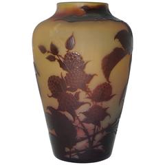 French Art Nouveau Emile Galle Small Cameo Glass Vase with Hazelnut Catkins