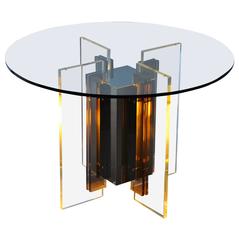 smoke and clear acrylic panel table base with central section housing concealed electrical illumination