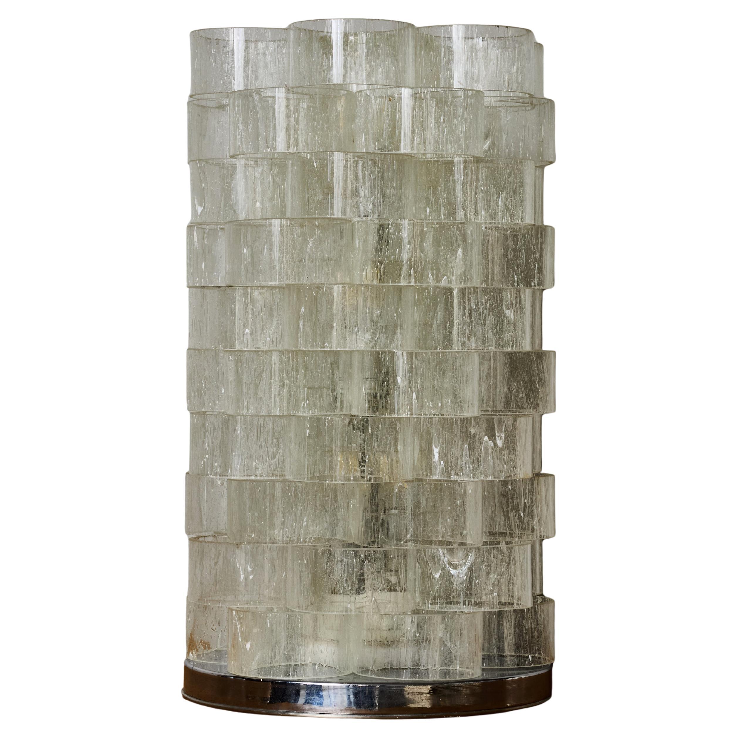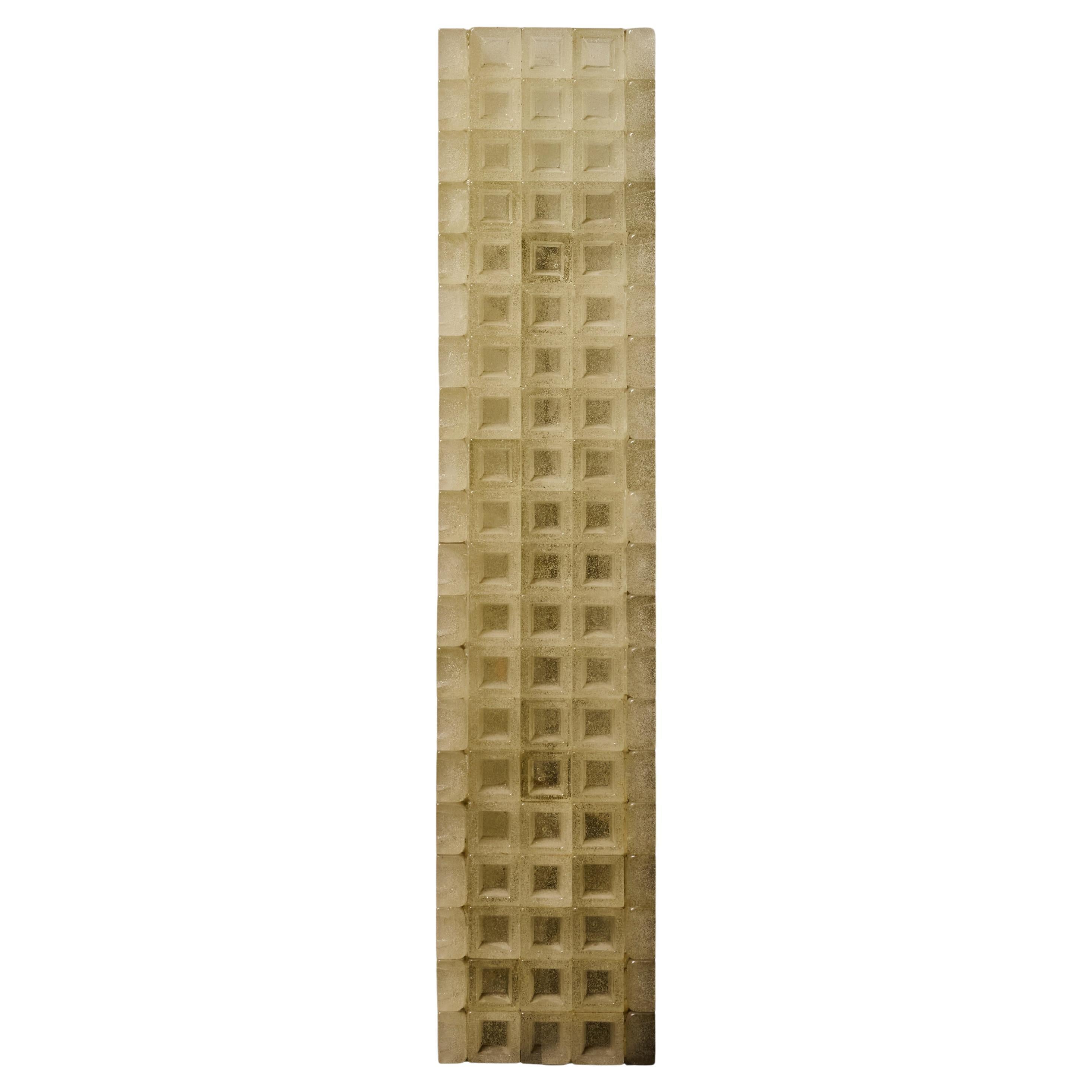 Striking sculptural floor lamp by Poliarte composed of a tall, monolithic tower of handcrafted cast-glass modules arranged in a rhythmic grid. Each glass cube is characterized by Pol...