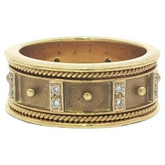 Vintage Pavé Diamond & 18k Yellow Gold Band with Tri-Gold Accent
