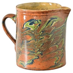 Great authentic and extremely rare piece of pottery with a spout in handle from the Provence called : Orjol du Lauragais. Beautiful weathered yellow glaze. Imperfections help authent...