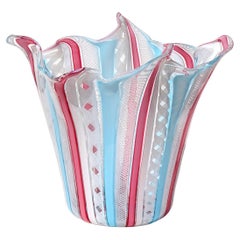 VENINI vase rare Fazzoletto a Canne multicolor Murano Glass, Signed 2010