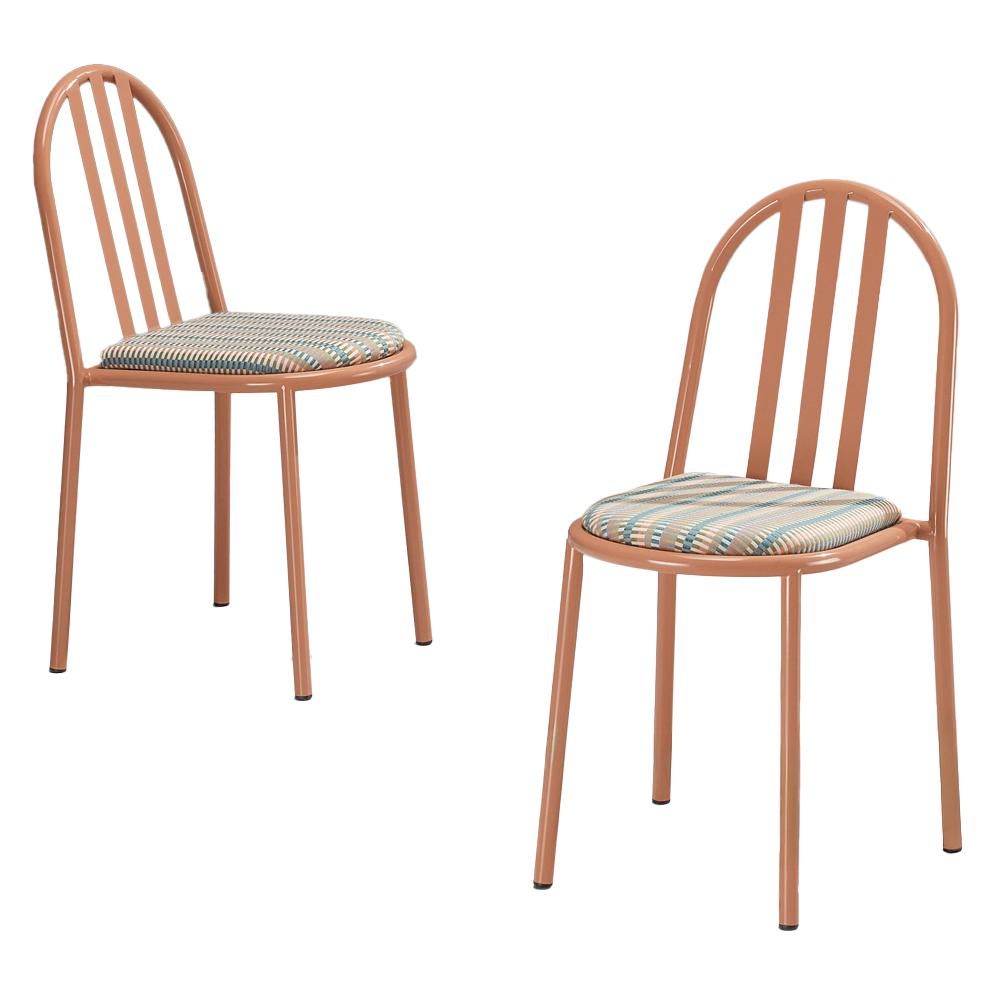 Admirable sky blue lacquered tubular chairs with orange-whit...
