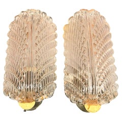 1990s Mid-Century Modern Barovier Style Murano Glass and Brass Wall Sconces