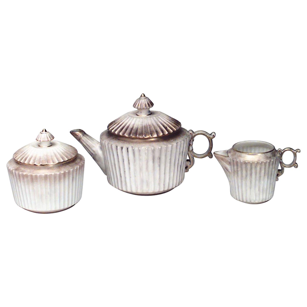 Set of 3 English Victorian beige porcelain tea set with gold trim and fluted design (Royal Worcester) (PRICED AS SET)