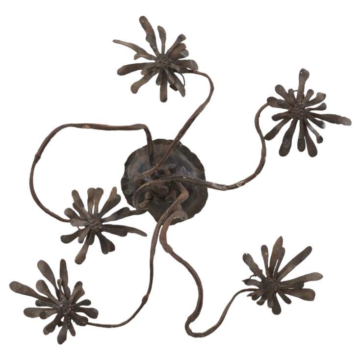 Rare mid-century modern metal Brutalist wall lamp "Flower" by Salvino Marsura, made in Italy in the 1960s.