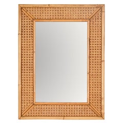 Large Rectangular Midcentury Wall Mirror framed in Rattan and Wicker, Spain, 1960s. Elegant mid-20th century woven wicker and rattan mirror inspired by Franco Albini designs. It has ...