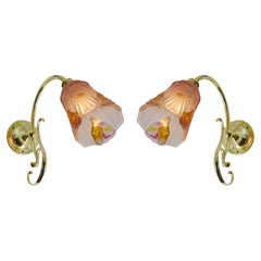 Pair of Murano Green Leaf Glass Wall Lights, in Stock