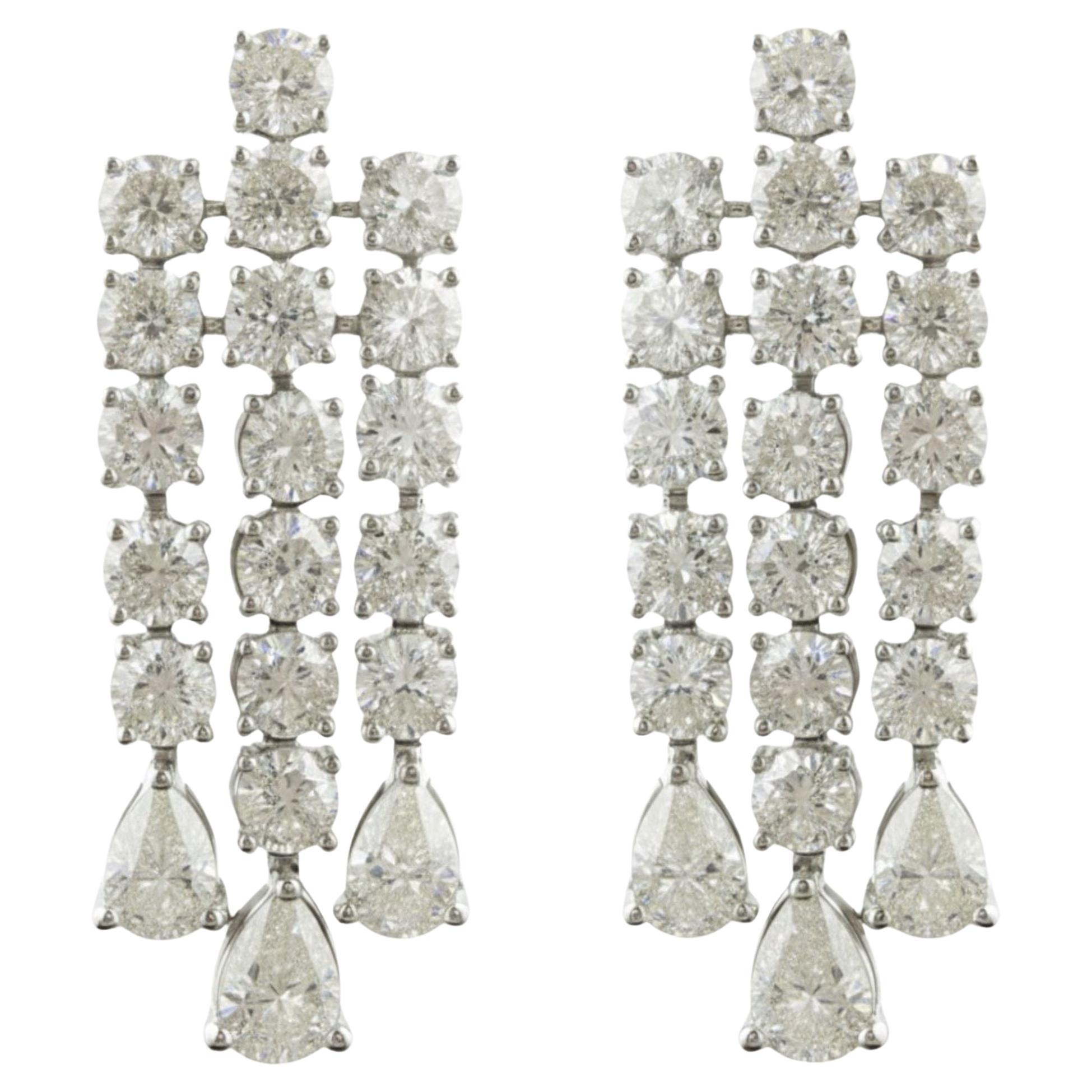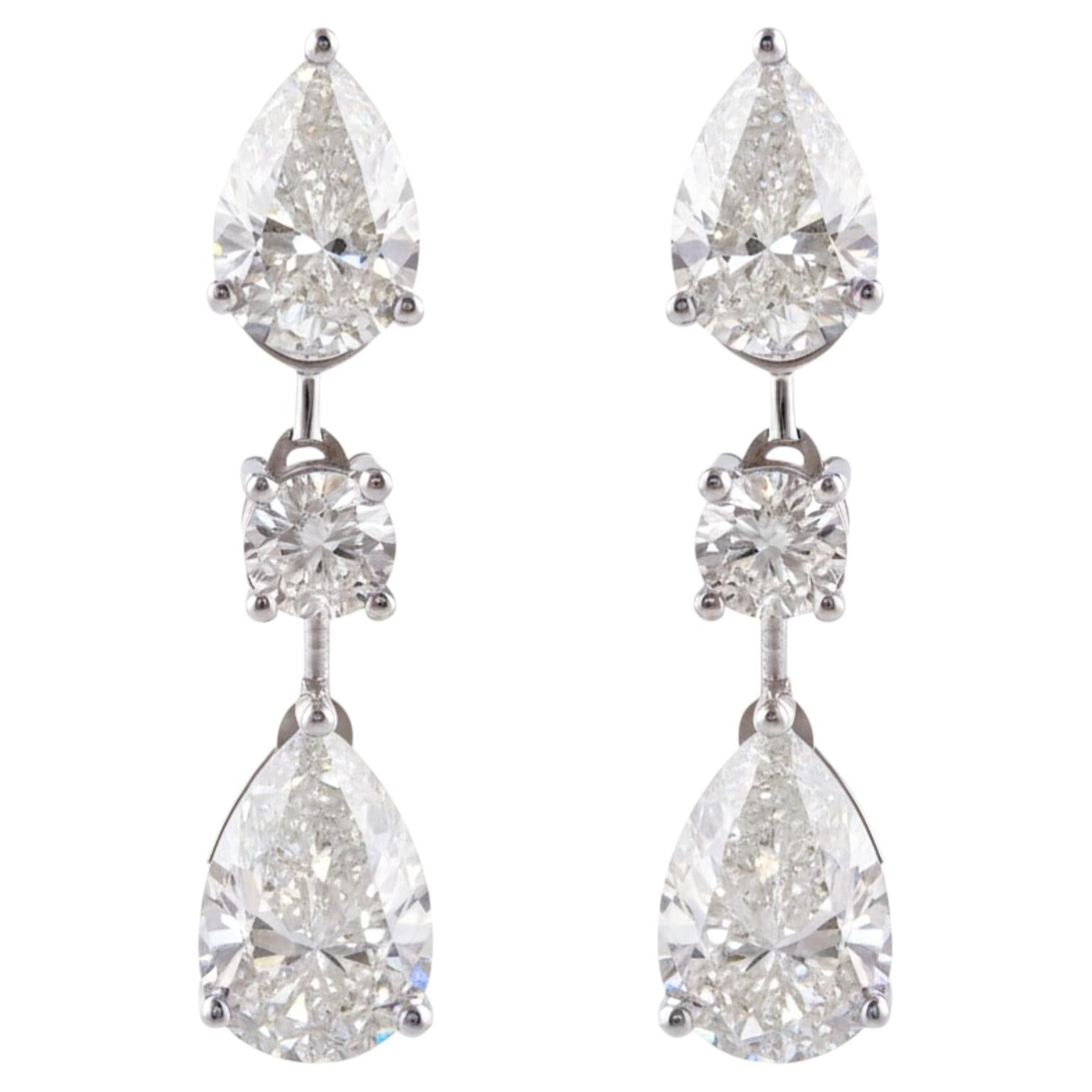 Real 1.7 Carat Pear Marquise & Round Diamond Dangle Earrings 14 Karat White Gold