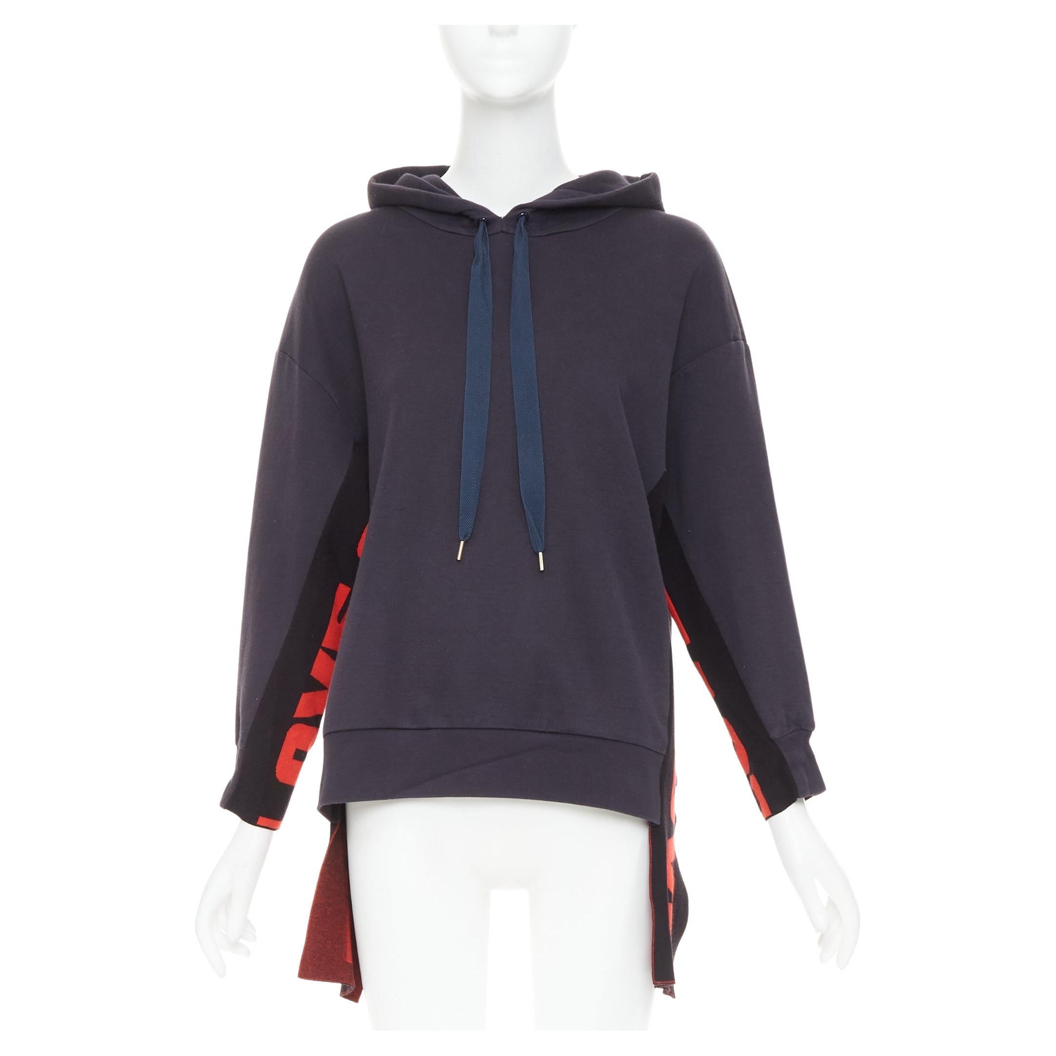 The garment's voluminous batwing sleeves with stretch-cotton ribbed neckline and hem, plus custom golden-charm two-way zipper, enable it to have different necklines and lengths to convert to a shorter draping bomber jacket.