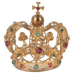 Ornate Victorian Gold Filled and Faux Pearl Comb from the late 19th Century. Large scale set with glass pearls and gilt swag chains hinged on a blond tortoiseshell comb. 1880's Franc...