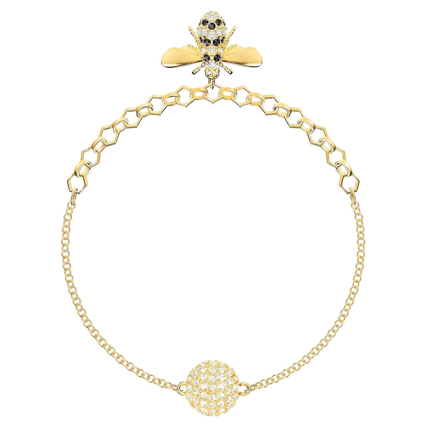 Swarovski Remix Collection Vivid Bee Pendant Charm Strand Bracelet, Gold Plated, M, BNWT