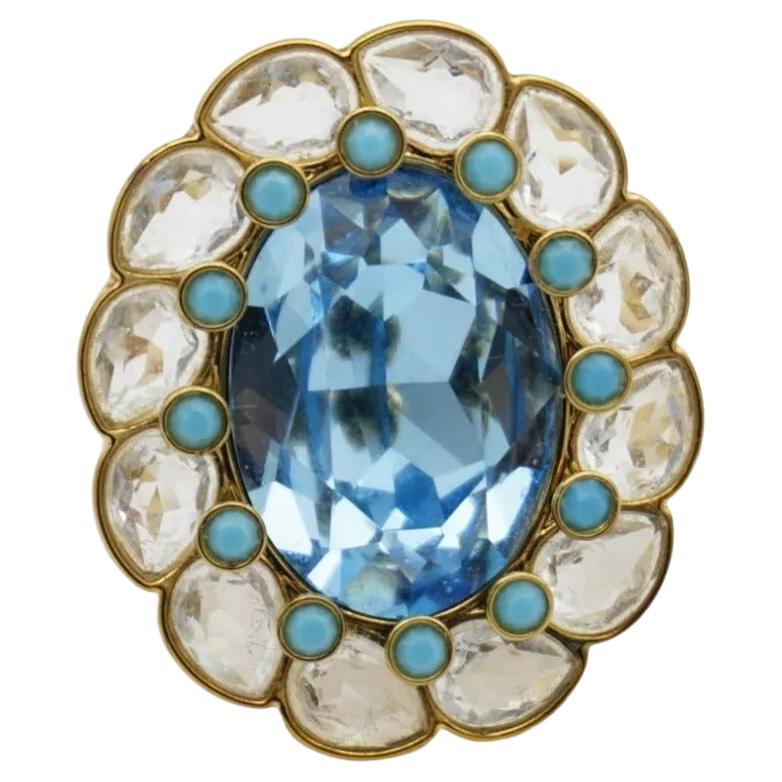 Swarovski Azore Large Clear Blue Oval Crystals Dots Flourish Blossom Flower Cocktail Chunky Statement Ring, Size R, EU 60